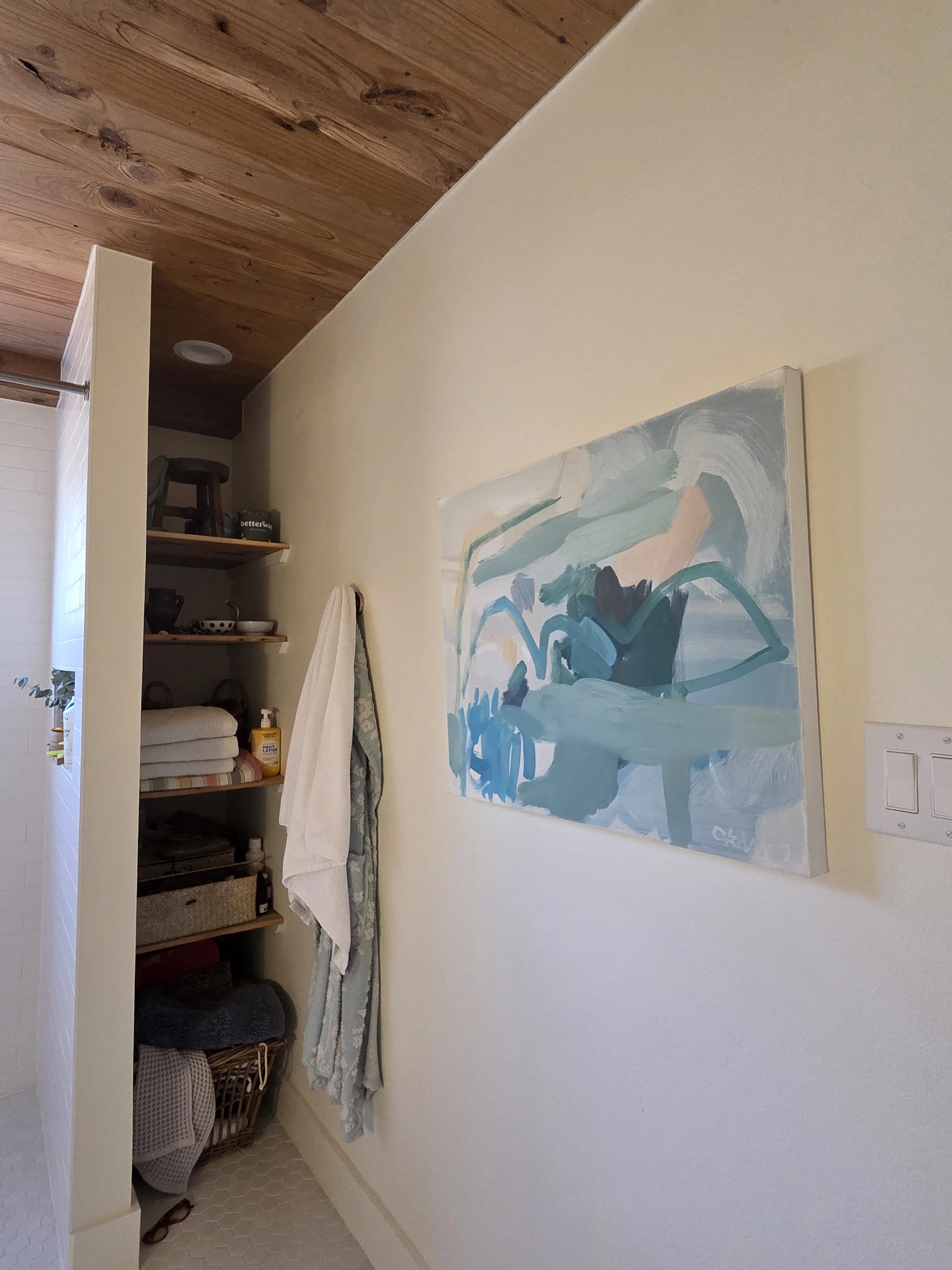 I think that’s the beautiful part of surrounding ourselves with art: it quietly transforms a space without ever demanding attention. A single piece can shift the whole energy of a room. It can catch you off-guard in the simplest moment — brushing your teeth, making your morning coffee, walking past a hallway — and suddenly you’re carried back to a memory you didn’t realize you needed. A lake day. A tiny adventure. A quiet place where you once felt fully yourself.